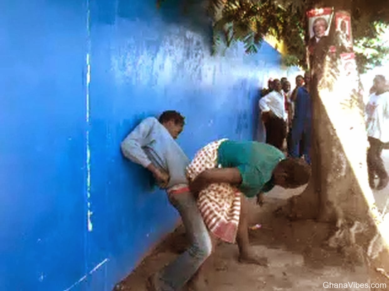 This couple was spotted in Ghana satisfying their sexual urge in broad daylight while an excited crowd gathered to watch and take pictures.